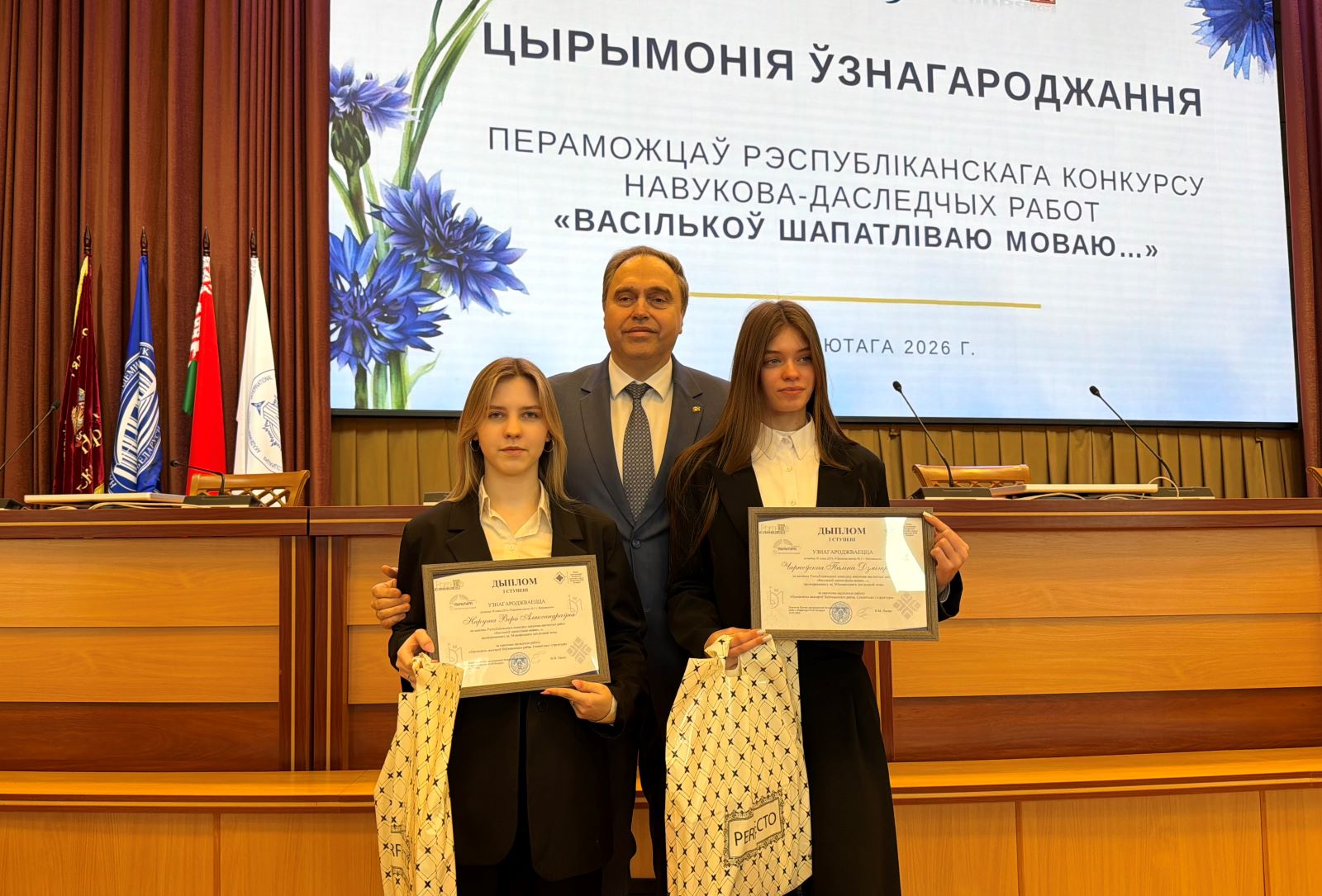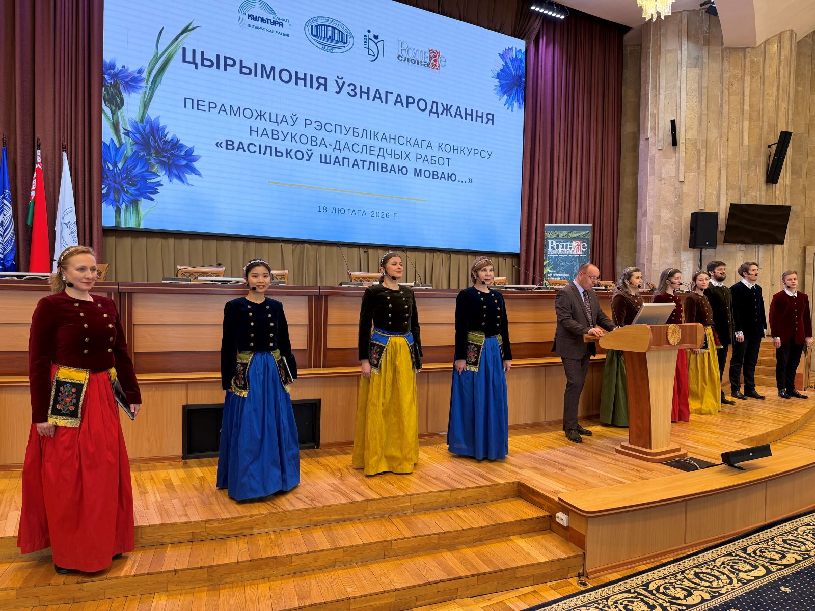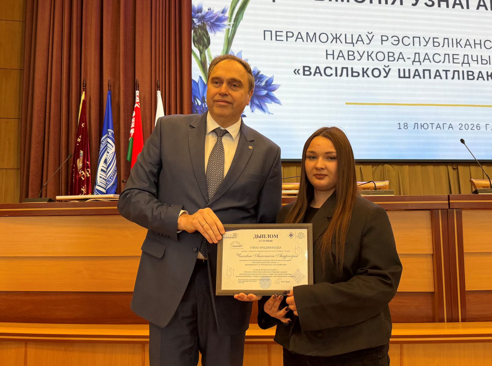 У Нацыянальнай акадэміі навук Беларусі 18 лютага адбылася ўрачыстая цырымонія ўзнагароджання пераможцаў Рэспубліканскага конкурсу навукова-даследчых работ «Васількоў шапатліваю моваю...», прымеркаванага да Міжнароднага дня роднай мовы. Дыпломы і каштоўныя прызы пераможцам – 60 канкурсантам з усіх рэгіёнаў краіны – уручыў Старшыня Прэзідыума НАН Беларусі Уладзімір Каранік.
