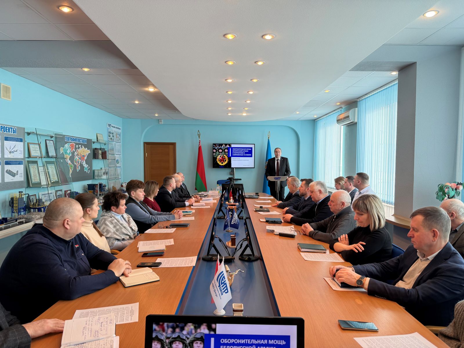 As part of the Unified Information Day, Vladimir Karanik held a meeting with representatives of the workforce of JSC “NPO Center”, where they discussed the current geopolitical situation and the defensive strength of Belarusian army.