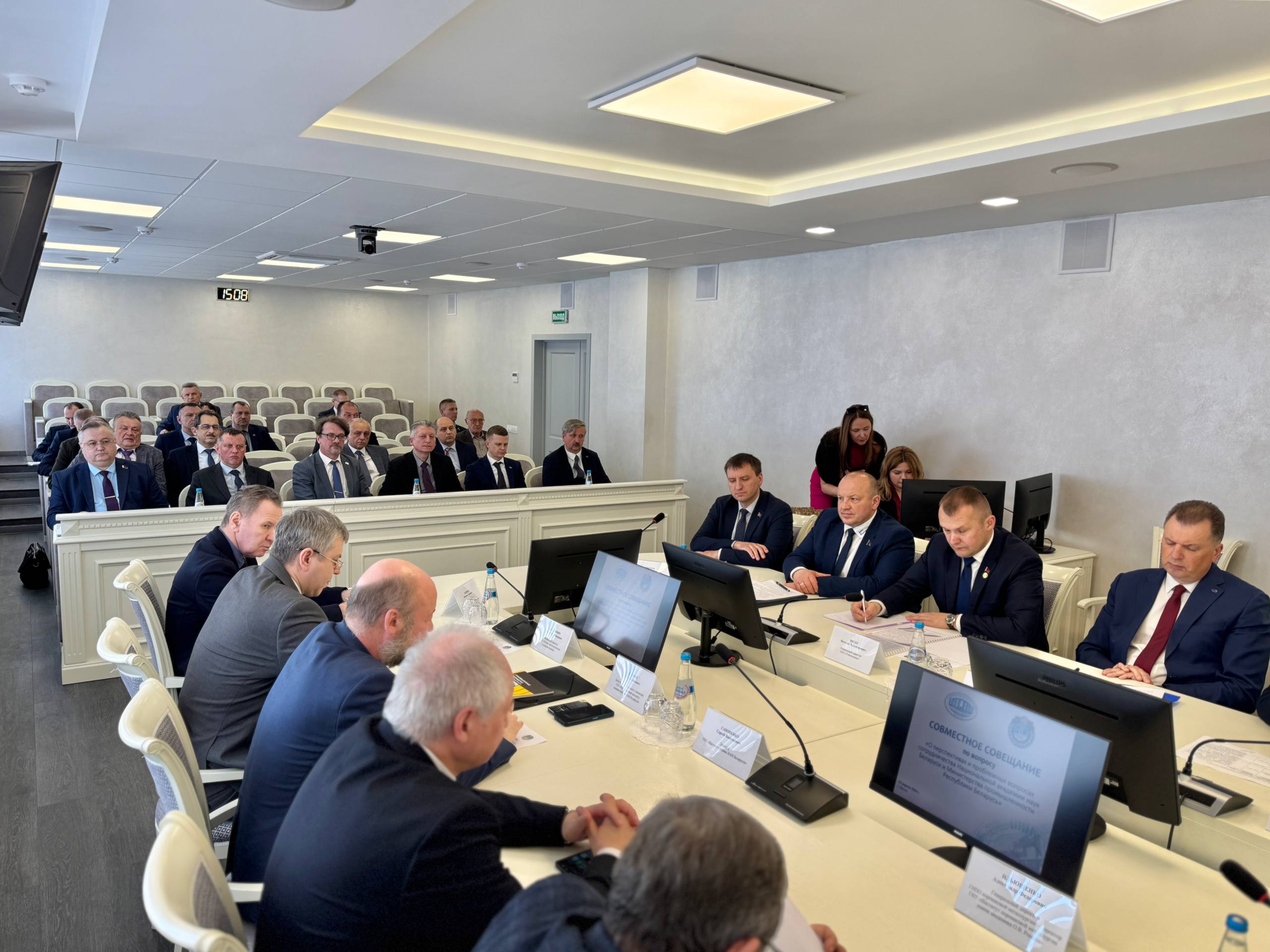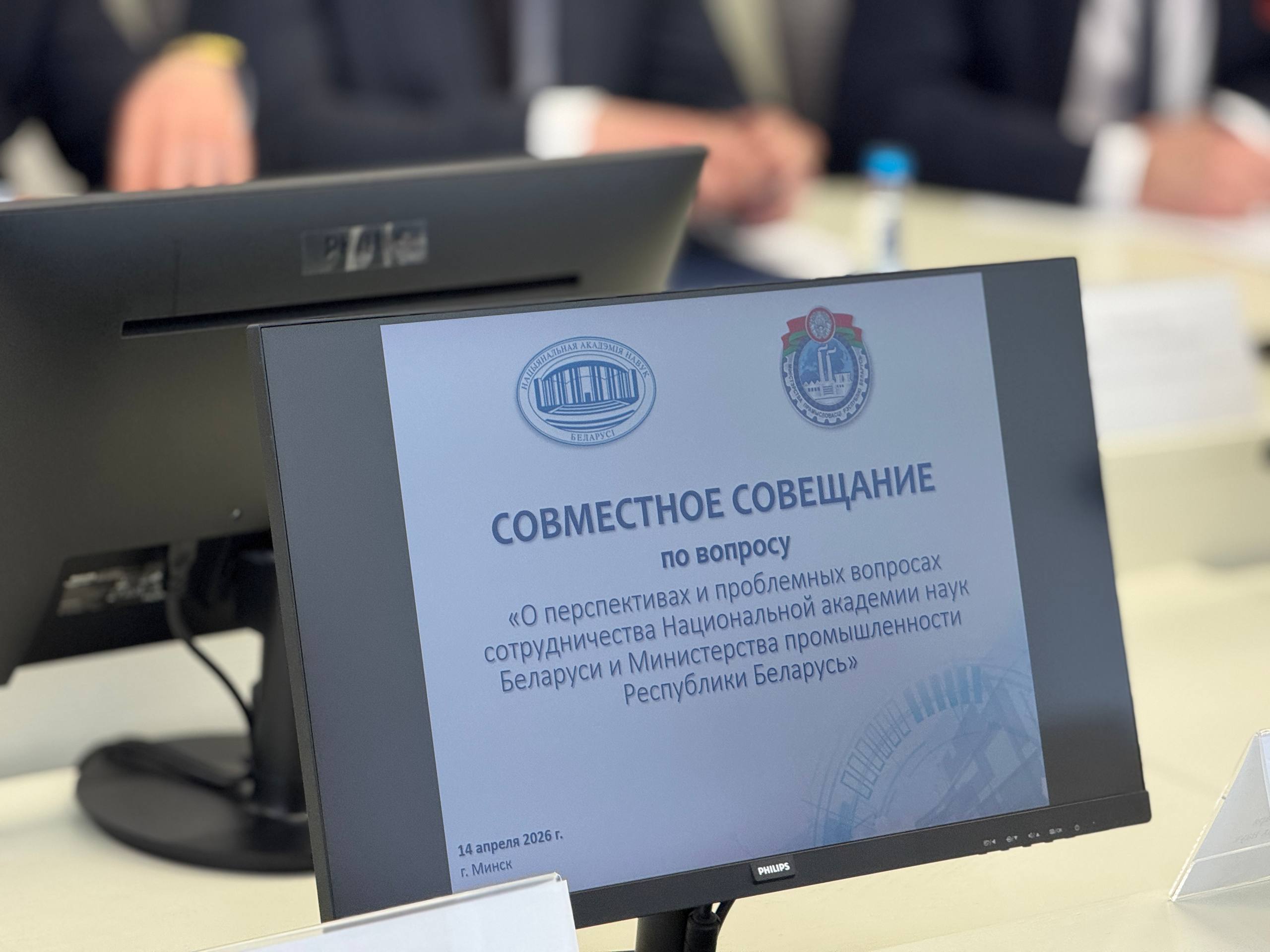 На площадке Министерства промышленности сегодня состоялось совместное совещание НАН Беларуси и Минпрома, на котором обсуждались актуальные и перспективные направления сотрудничества. В нем участвовали представители семнадцати промышленных холдингов и академических организаций, в том числе ГНПО «Оптика, оптоэлектроника и лазерная техника», Института порошковой металлургии, Институт физико-органической химии, Институт технологии металлов, Института тепло- и массообмена и др.